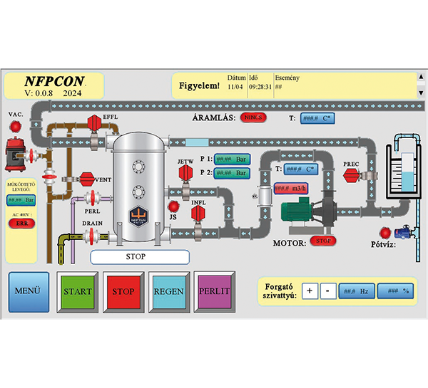 Az INOX Jetwash perlit szűrő egyik fő előnye a magyar piac igényeire fejlesztett, egyszerűen kezelhető vezérlőrendszer. Ez nemcsak a legmodernebb technológiát képviseli, hanem kifejezetten a hazai uszodák és fürdők speciális igényeire készült, felhasználóbarát megoldás. Megkönnyíti a kezelők munkáját, növeli a rendszer megbízhatóságát, és támogatja a gazdaságos üzemeltetést.